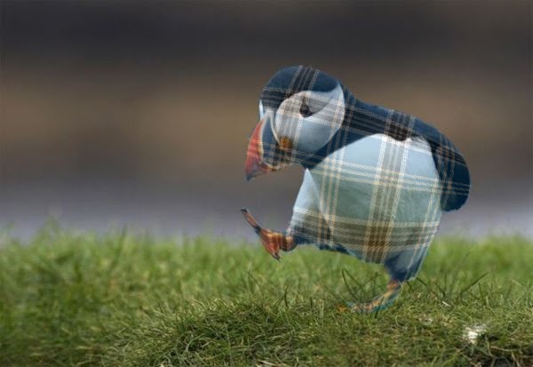Project 3: splatfant: not exactly a "splat" or a "fant" my plaid puffin still manages to stay classy. Creating the puffin used mainly the warp tool and opacity settings.